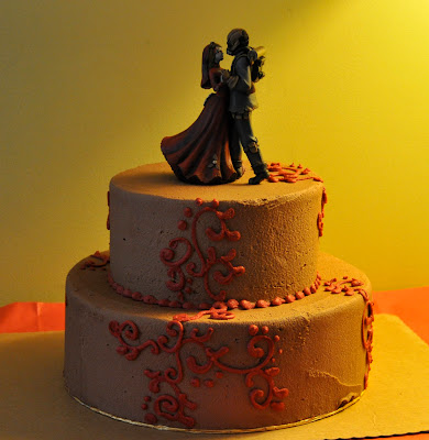 And after the wedding, I received this picture of the cake topper in action. I am told that it was a big hit.