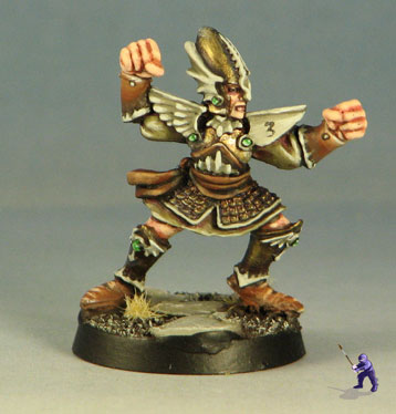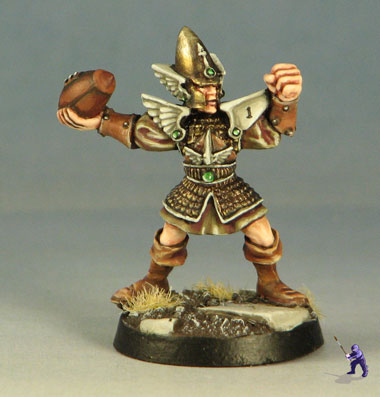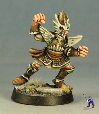 Since we’ll have to wait on the new minis for a bit, here are pictures of the old Blood Bowl team. For this color scheme, I really wanted to make the minis into something different, so I drew inspiration from the Lord of the Rings films rather than the old silver and blue (plus orange) of the old High Elf scheme.
